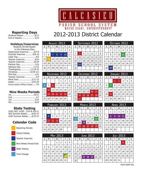 2012 13 District Calendar | PDF